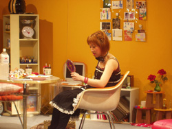 手鏡を見て微笑む自称「ゴスロリじゃない」女性。
