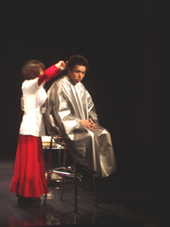 お客さんの髪を切る「ハリエンジュ」。