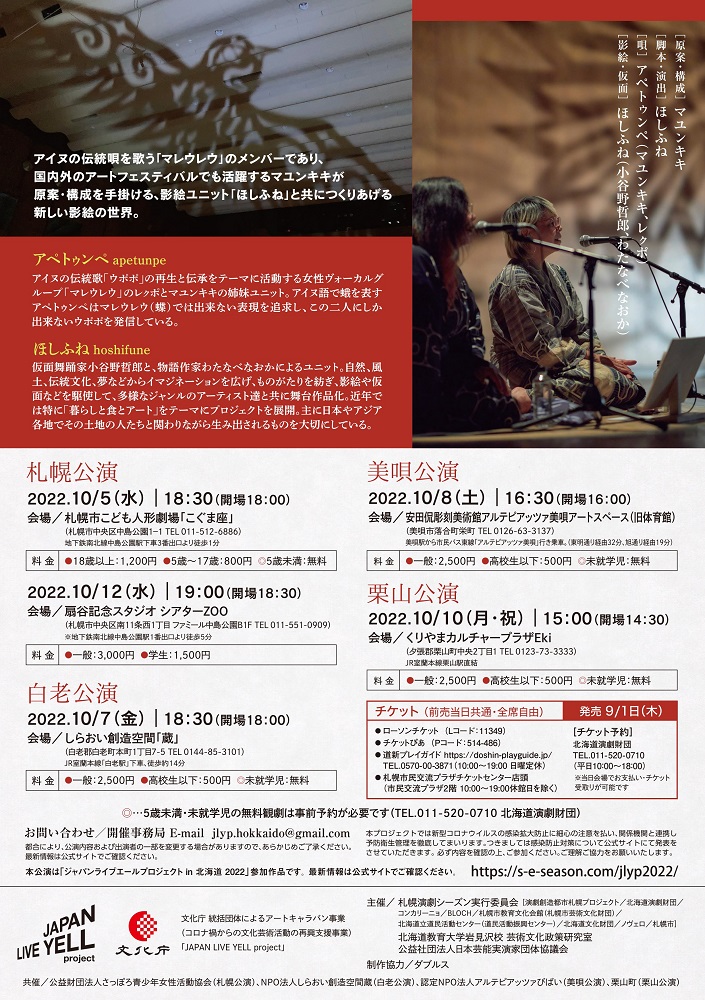 | 主 催 | 札幌演劇シーズン実行委員会・北海道教育大学岩見沢校芸術文化政策研究室・公益社団法人日本芸能実演家団体協議会 |