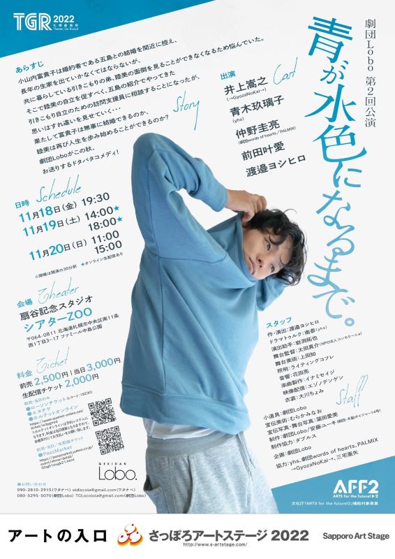 来る11月18日(金)より開催を予定しておりました劇団Lobo第2回公演「青が水色になるまで。」は、公演関係者の中に新型コロナウィルス感染者が確認されたため、開催を中止し、2023年以降に延期することとなりました。