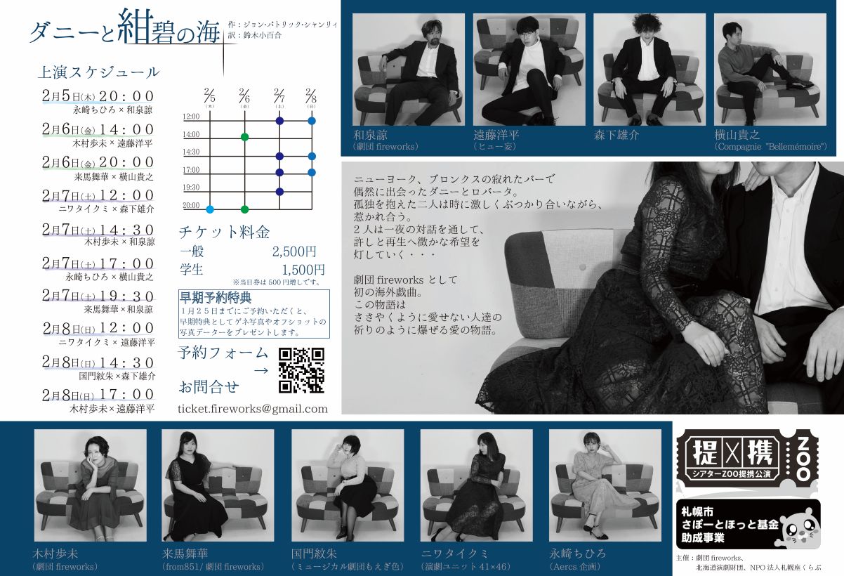 | 主 催 | 劇団fireworks、北海道演劇財団、NPO法人札幌座くらぶ |